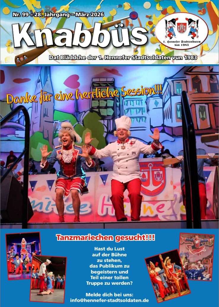 Dat Bläddche der 1. Hennefer Stadtsoldaten vun 1983 jetzt auch als PDF. Wir wünschen viel Spaß.